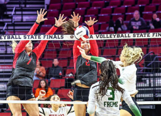 Jane Manecke (9) and Nazareth Academy rode a late-season surge to the IHSA Class 3A finals before falling to No. 1-ranked Normal U-High. (Photo by Dave Ruggles)