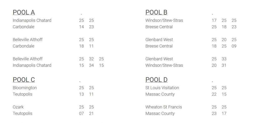 Andrew def. Stagg 25-27, 25-21, 25-14Andrew: Bri Haggerty (11 kills, 9 digs), Katie DeHaan (26 assists), Kylie Adams (19 digs), Amanda Long (9 digs), Meredith Flaherty (7 kills), Alexa Caponigro (6 kills).Aurora Christian def. Westminster Christian 25-9, 25-12Westminster (3-5 overall, 0-1 in the Northeastern Athletic). Aurora Christian (2-1 overall, 1-1 in the Metro Suburban Conference).No. 16 Belleville Althoff def. Marion 25-14, 25-10No. 4 Benet def. Naperville Central 25-11, 25-20Naperville Central (2-2): Alexandra Vanwestrienen (9- digs)...