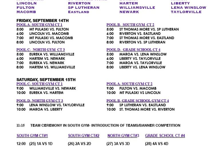 (Chicago) Roosevelt is looking for donations of new or used volleyballs. Please call coach Nathaniel Swopes at (773) 754-9403. Anna Jonesboro def. Carterville 29-27, 23-25Anna Jonesboro (5-8 overall): Fitzgerald (2 blocks, 13 digs, 10 assists), Lasley (6 kills, 10 digs, 2 aces).Carterville (3-8 overall): A. Mavigliano (5 digs), Taylor (7 digs), B. Mavigliano (4 kills).Aurora Central Catholic def. Fenton 25-22, 21-25, 27-25Aurora Central Catholic (9-11): Kaileigh Remlinger (9 kills, 2 aces, 6 digs), Jessica Estrada (3 kills), Maggie Dervis (...