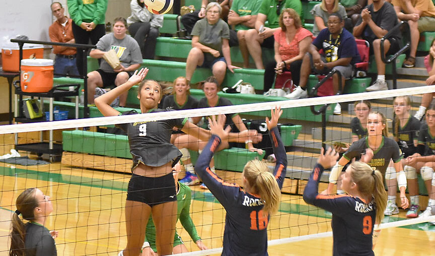 Vanderbilt recruit Rachel Ogunleye (9) of Normal University High slammed 5 kills in Thursday's 25-21, 25-17 home win over Rochester. Rockets battling at the net were Peyton Zeidler (16) and Hadleigh Maley (9). (Photo by Randy Sharer) Thursday, August 31 results (updated 9:05 a.m., Friday, September 1)Alleman def. East Moline 25-20, 25-22Alleman (3-1 overall, 1-0 in the Western Big Six): Ashley Wood (1 ace, 2 kills, 5 digs), Emilye Polich (1 kill, 3 blocks), Megan Hulke (4 kills, 2 blocks, 19 assists, 4 digs), Ashlyn Sullivan (1 kill, 1 ...