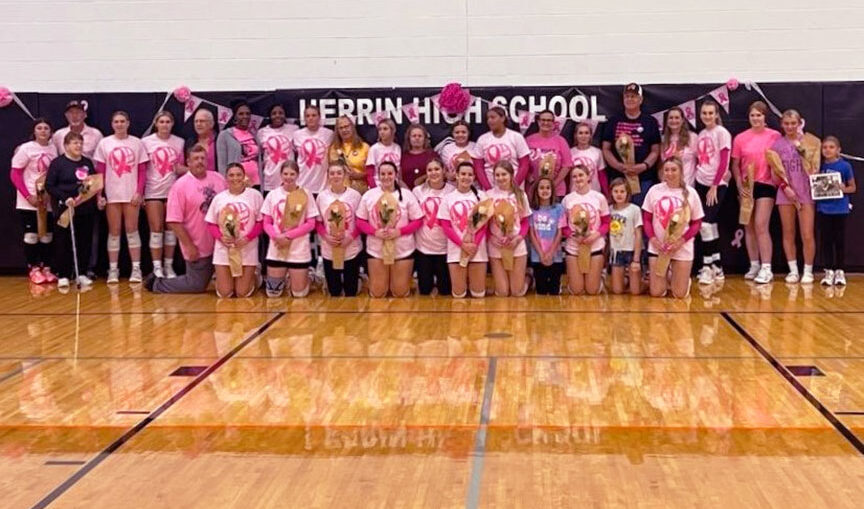 Massac County and Herrin got together for their "Pink Out' night on Thursday to raise cancer awareness. The Patriots also won the match to clinch their third consecutive Southern Illinois River-to-River Conference title in the Ohio Division. Thursday, October 5 results (updated 2:05 p.m., Friday, October 6) Aquin Catholic def. Pearl City 26-24, 23-25, 25-17Aquin Catholic (16-5 overall, 6-2 in the Northwest Upstate Illini Conference): Megan Holder (22 assists, 12 digs), Ainsley Stovall (16 kills, 14 digs).JV: Pearl City won 25-17, 27-25...