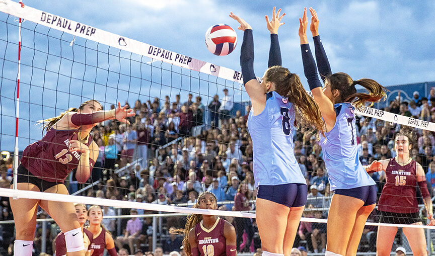 DePaul College Prep and St. Ignatius went outdoors and under the lights on Saturday, September 6, DePaul eeked out a 27-25, 30-28 victory. By Phil BrozynskiIllprepvb.com EditorIf you’re looking for the latest trends, you probably wouldn’t go to Nebraska, which is best known for being the birthplace of Arbor Day, hosting the Sandhills Crane migration, and being the home of innovations like the Vice Grip wrench and the Enola Gay.But Nebraska did give us something totally new recently – indoor volleyball played outdoors – when mo...