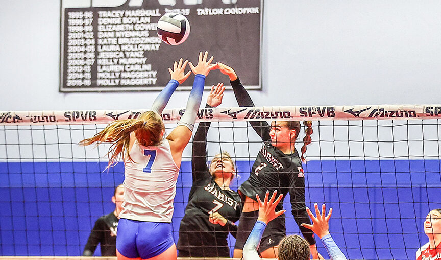 Maggie Kurpeikis (2) and Marist turned back Joliet West in the RedHawks' home opener Wednesday. (Photo by Dave Ruggles) By Randy WhalenSpecial to Illprepvb.comMarist weathered the storm. Playing their first home match of the season on their refurbished court, the RedHawks made sure it was a good one with a 25-23, 25-11 victory Wednesday over Joliet West. Taylor Berg banged a match-high 11 kills and added a pair of aces, Savanah Weathers added 7 kills, 3 blocks, 5 digs and 2 aces, and freshman setter Haven Enselman continued to impress with ...