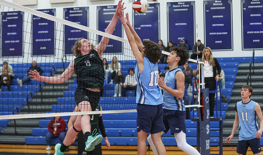 Bishop McNamara's 6-3 middle hitter Evan Rauwolf (19) tips a ball over a pair of Plainfield South defenders during both teams' season opener Monday. (Photo by Dave Ruggles) Monday, March 18 resultsBolingbrook def. Marmion Academy 25-7,25-11Bolingbrook (1-0 overall, 0-0 in the Southwest Suburban Conference): Trevor Wardlow (5 kills, 1 ace, 4 digs), Tristan Caminar (4 kills, 4 digs), Tristan Benbow (3 kills, 2 blocks, 1 ace), Tyler Vasquez (3 aces, 3 digs), Connor Dmochowski (13 assists, 3 digs).Marmion Academy (0-1 overall, 0-0 in the Chica...
