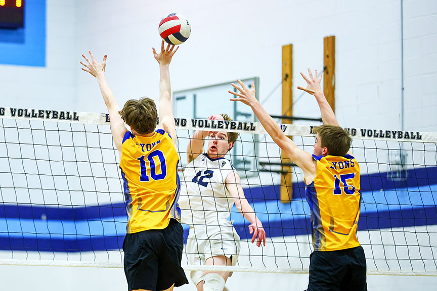 New Trier (13-5 overall, 3-0 in the Central Suburban South): James Hayek (9 blocks, 6 kills), Charlie Tinsley (7 kills), Henry Brandenburger (5 kills, 2 blocks), Oliver Potterfield (6 kills, 2 blocks), Colin Kim (17 assists), Sean Scheppach (14 assists), Keenan Roderick (2.3 serve receive, 5 digs).