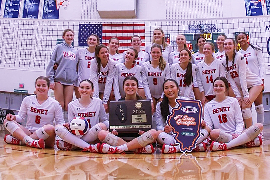 Benet Academy (38-2 overall, 6-0 in the East Suburban Catholic Conference): Molly Welge (7 kills, 1 assist), Brooklynne Brass (8 kills, 3 aces, 7 digs), Sophia Chinetti (2 kills, 4 digs, 2 blocks), Claire Weathers (2 aces, 6 digs), Ellie Stiernagle (4 kills, 22 assists, 1 dig), Lynney Tarnow (3 kills, 1 block), Sophia Youssef (3 kills, 3 blocks), Abby Lee (2 aces, 10 digs), Erin Johnson (2 digs).