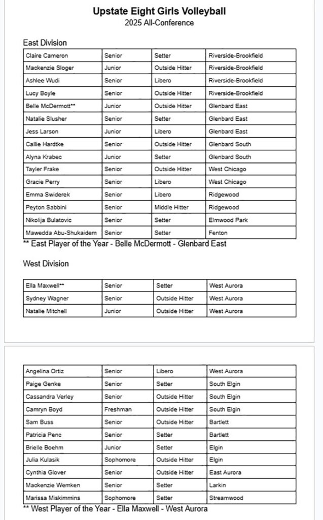 Upstate Eight All-Conference Team