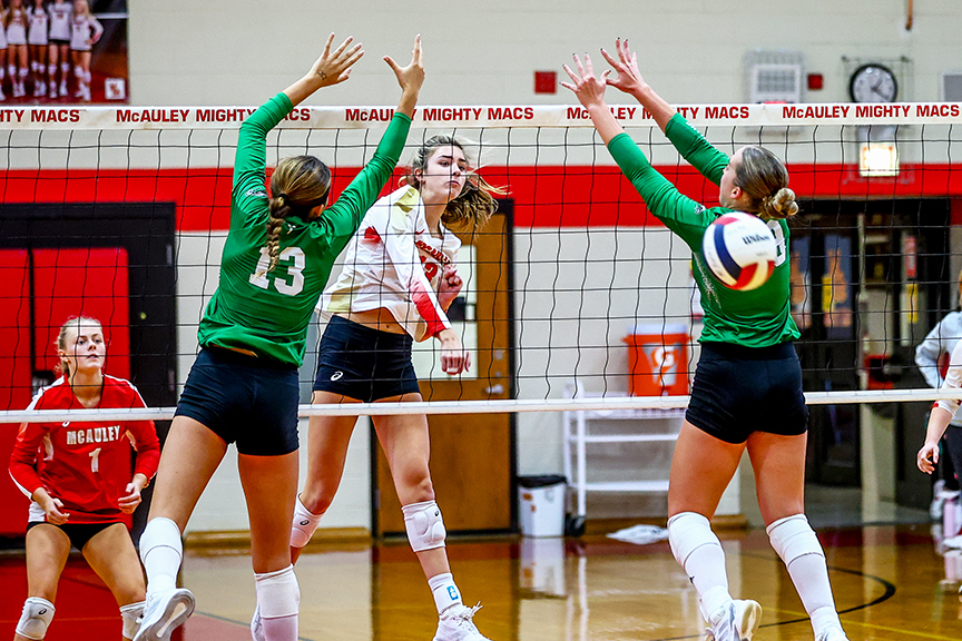 Newman Central Catholic def Morrison 25-23, 23-25, 25-17