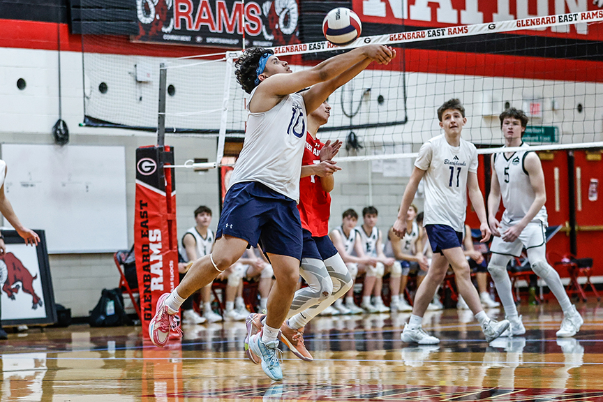 Glenbrook South (8-2 overall, 0-0 in the Central Suburban South): Michal Marcisz (8 kills, 2 digs), Daniel Manko (4 kills, 2 blocks), Tony Ganbat (3 kills, 2 digs, 1 block), Jake Widner (5 kills, 2 blocks, 2 aces), Riyad Habibovic (2 blocks), Anand Khatanbaatar (16 assists, 5 digs, 1 ace), Ryan Lee (4 digs).