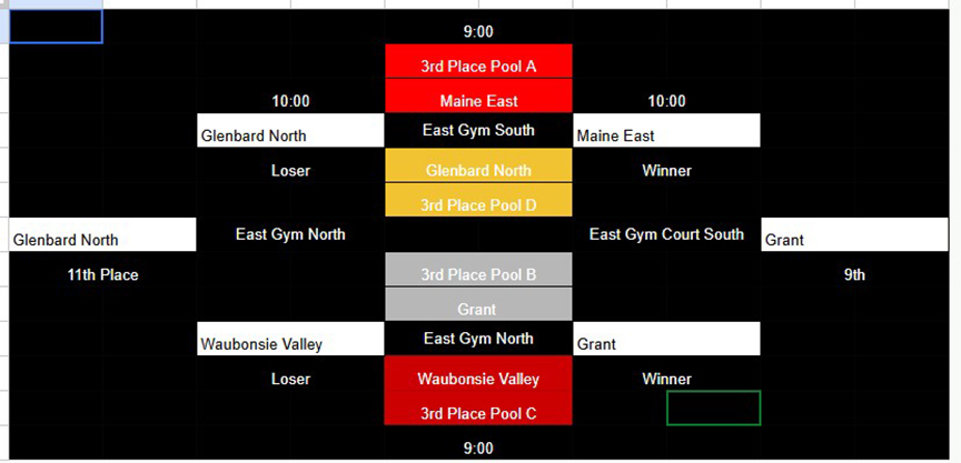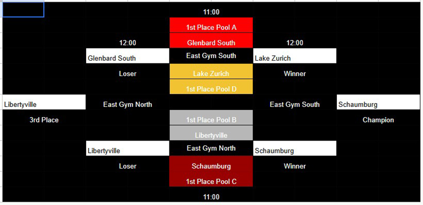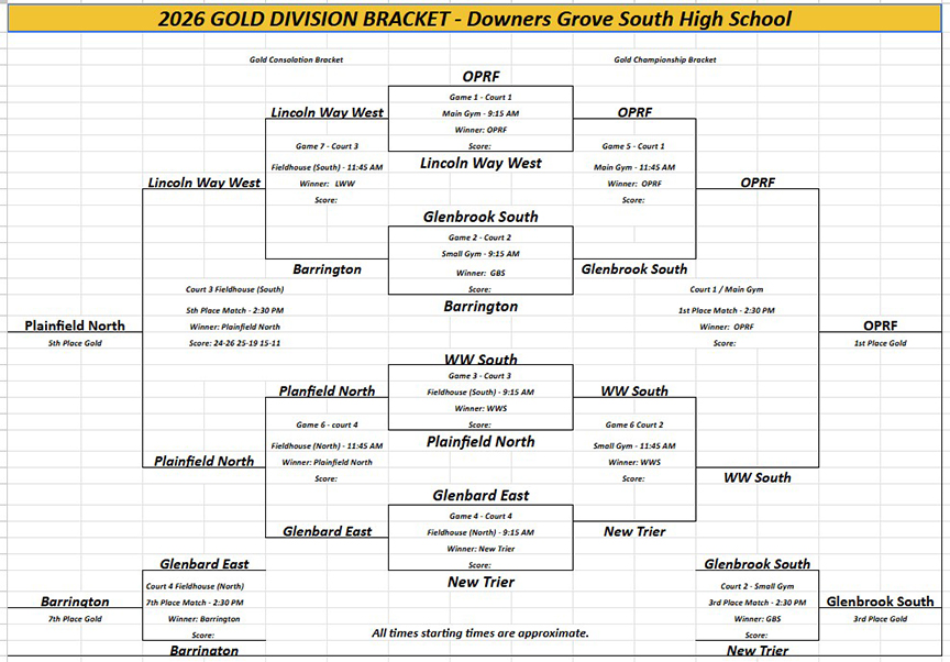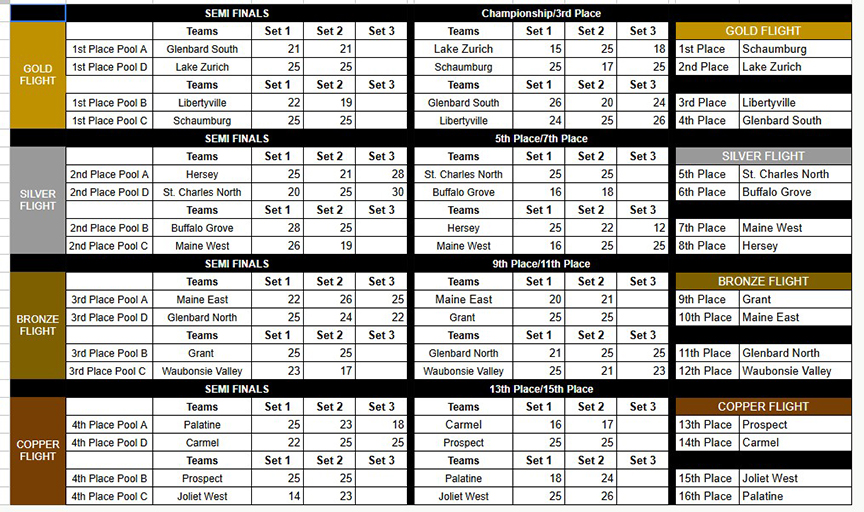 Glenbrook South (16-4 overall, 3-1 in the Central Suburban South): Michal Marcisz (7 kills, 5 assists, 3 blocks), Jake Widner (3 kills, 4 blocks), Daniel Manko (6 kills, 1 block, 1 ace), Theo Moutzouros (4 kills, 2 blocks), Riyad Habibovic (3 kills, 2 blocks), Anand Khatanbaatar (16 assists), Ryan Lee (3 digs).