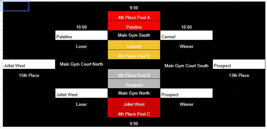 Glenbrook South (15-3 overall, 3-1 in the Central Suburban South): Michal Marcisz (9 kills, 4 assists, 3 digs, 3 blocks), Jake Widner (9 kills, 3 blocks, 2 aces), Daniel Manko (10 kills, 4 digs, 1 block, 1 ace), Tony Ganbat (3 kills, 8 digs), Riyad Habibovic (4 kills, 3 blocks), Anand Khatanbaatar (22 assists), Ryan Lee (13 digs).