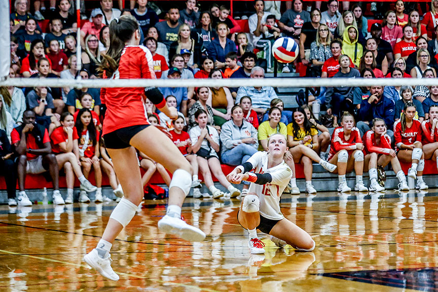 St. Charles North (22-3 overall, 4-0 in the DuKane Conference): Amber Czerniak (5 kills), Meg Kalenowski (1 assist), Erin Skidmore (1 assist), Mia McCall (24 assists, 2 kills, 2 blocks), Ellie Sutter (1 kill), Brianna Dale (1 kill, 1 block), Brynn Hopkins (3 kills, 1 block), Sidney Wright (2 kills, 2 aces), Haley Burgdorf (20 kills, 4 blocks).